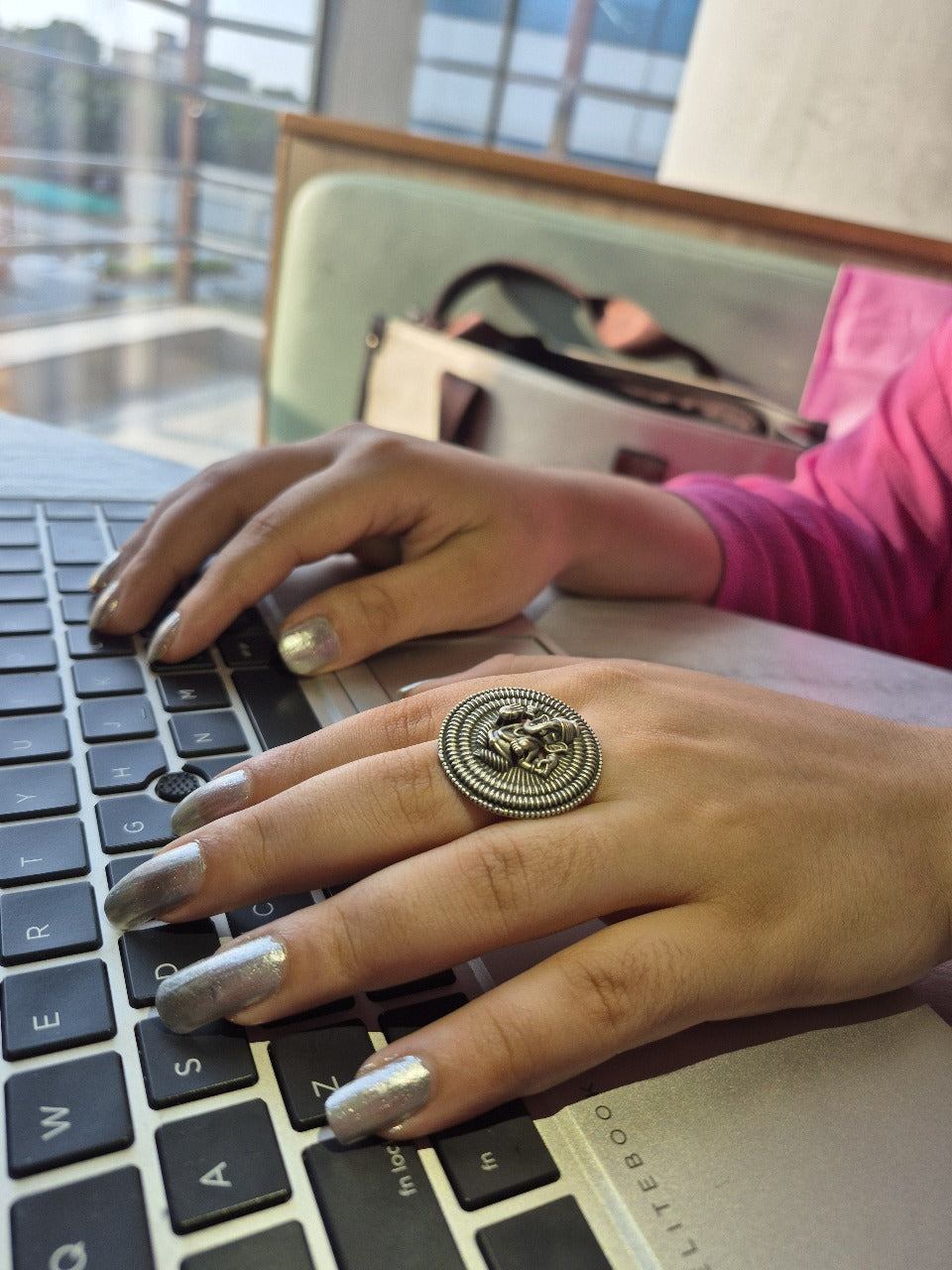 Blessings of Ganesha – Antique Finish Adjustable Brass Ring